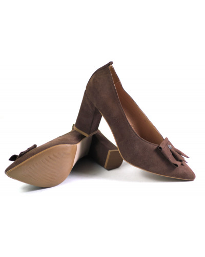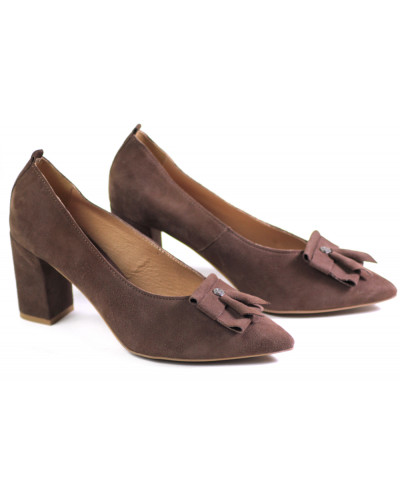 Eleganckie czółenka Uncome 42063 CAM Marrone to połączenie klasyki i nowoczesnego designu, idealne dla kobiet ceniących styl i komfort. Cholewka wykonana z wysokiej jakości skóry naturalnej – zamszu – nadaje butom luksusowego charakteru, a jednocześnie zapewnia miękkość i trwałość. Wnętrze również zostało wykonane z naturalnej skóry, co gwarantuje komfort noszenia przez cały dzień i pozwala stopom „oddychać”.